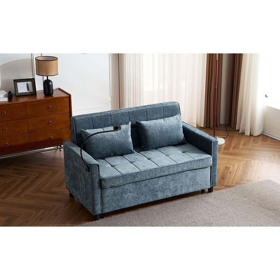 Divano 56.9 \ "blu reversibile con letto letto estraibile con porta USB porta telefono tasche laterali per soggiorno