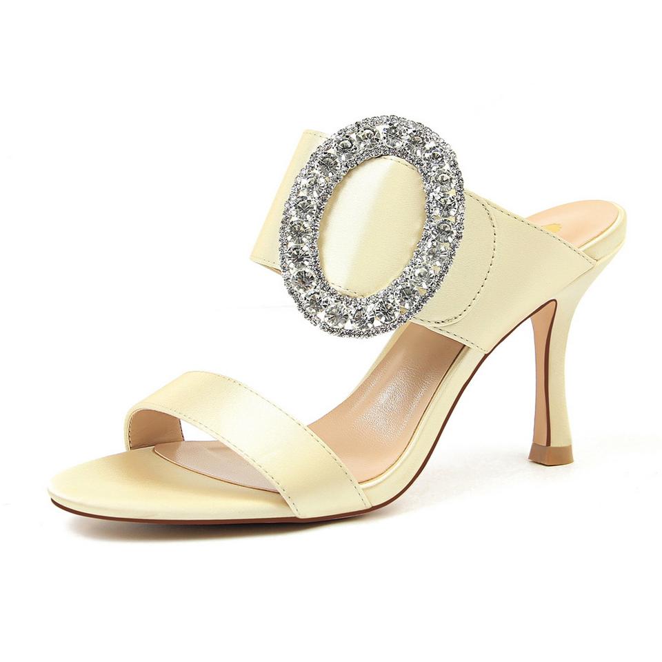 566-1 European and American Fashion Sexy Banquet High Heel Metal Rhinestone Buckle Satin Word With Female Sandals and slippers
