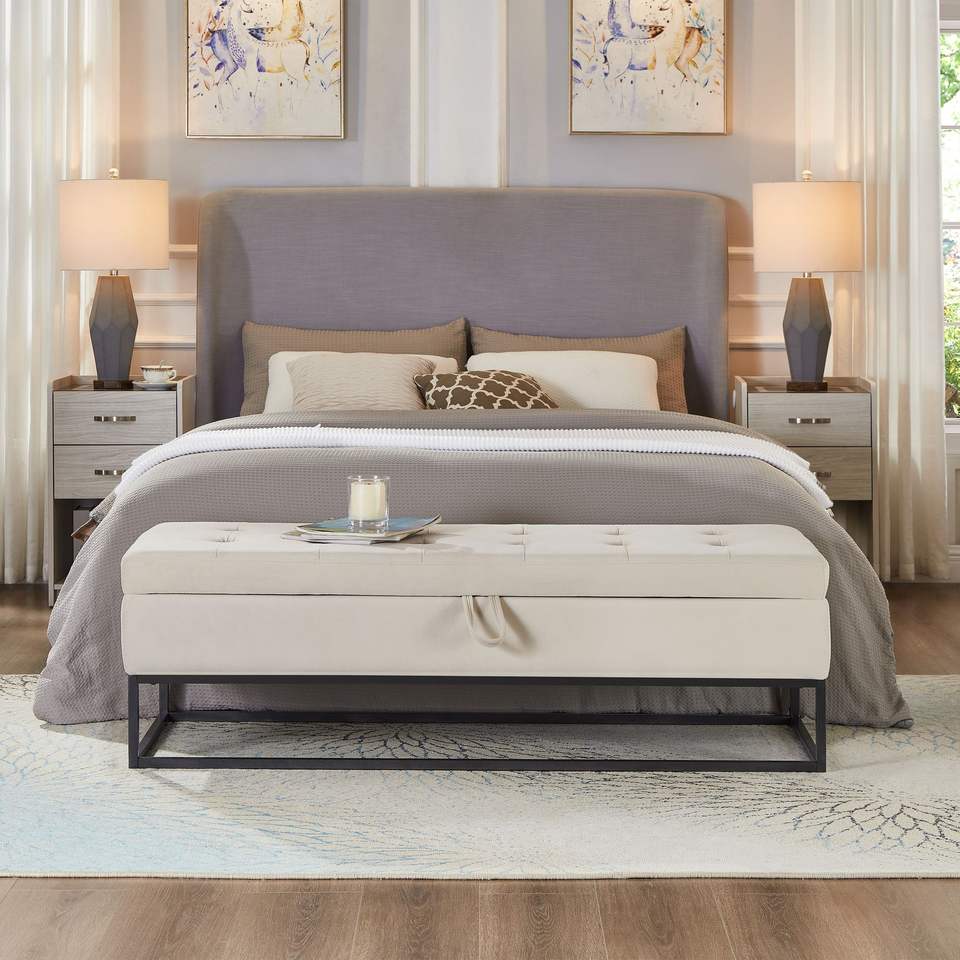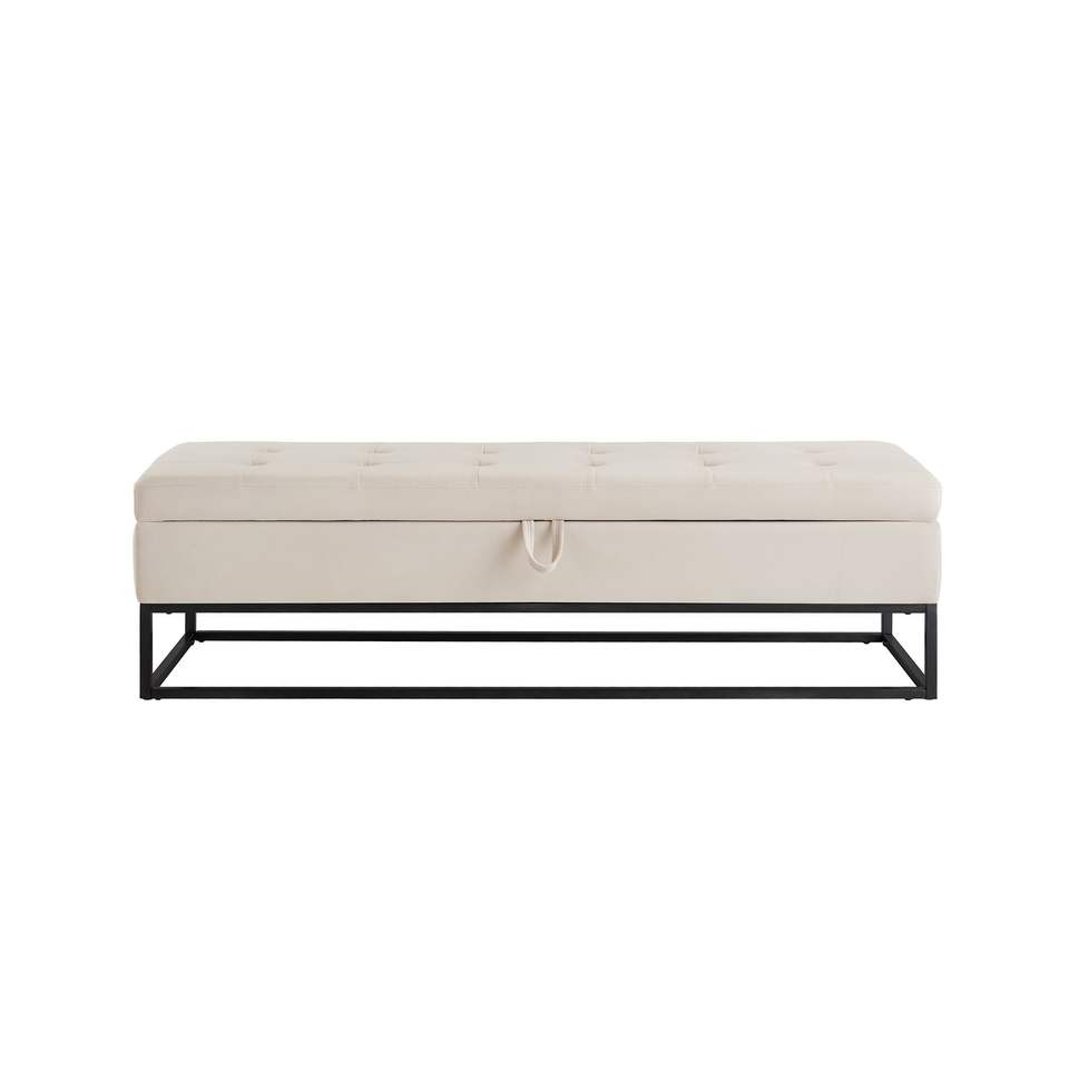 Panca letto da 149 cm con velluto beige e base in metallo, mobile da soggiorno con contenitore
