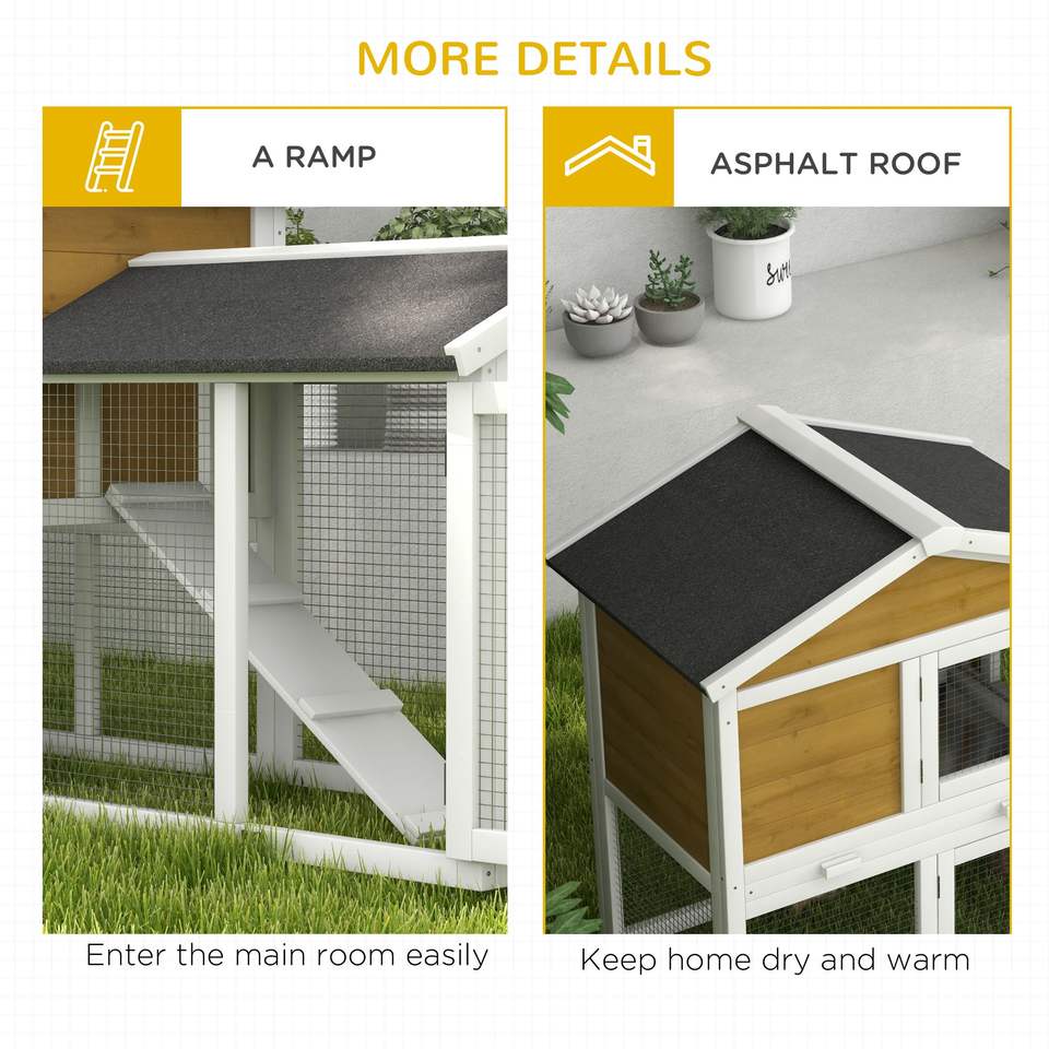 Conigliera in Legno Naturale da 58 Pollici con Recinto, Porte Bloccabili, Vassoio Rimovibile e Tetto in Asfalto