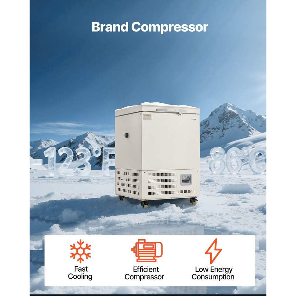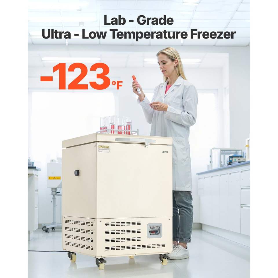 Congelatore a Temperatura Ultra Bassa da 58 L per Laboratorio, Gamma Regolabile -40 -123 F, Display Digitale, Attrezzatura di Refrigerazione a Rulli