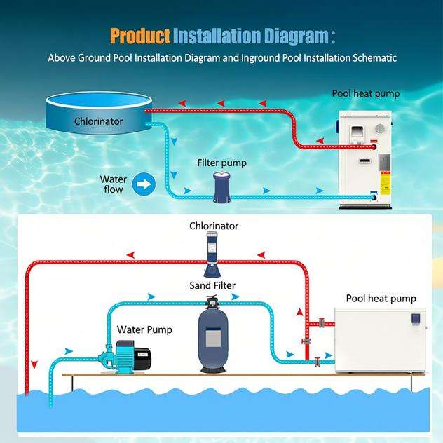 Pompa di Calore Inverter per Piscina da 58000 BTU con Clorinatore e Luce LED, per Piscine da 30ft (8/18/30ft) e 16500 Galloni, Riscaldatore a Gas Naturale da Terra