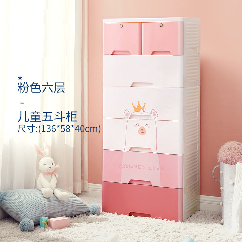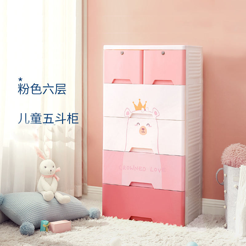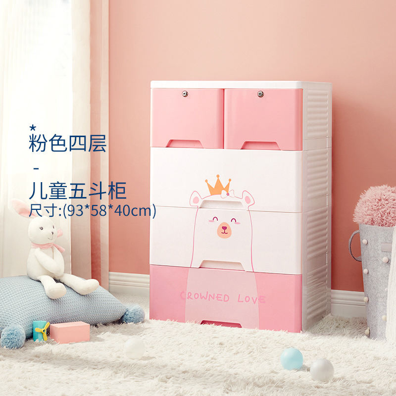 Bear Design Children Plastic Clothes Cabinet 5 Layer Storage Drawers