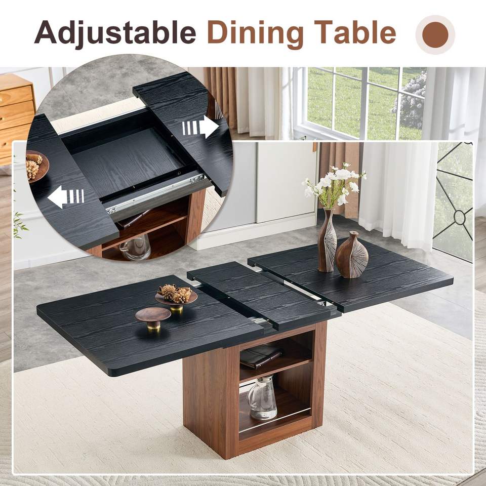 Tavolo da Pranzo Espandibile da 59-71 Pollici con Set di 8 Sedie in Tessuto Marrone Confortevoli, Abbinato a Tecnologia per Sala da Pranzo