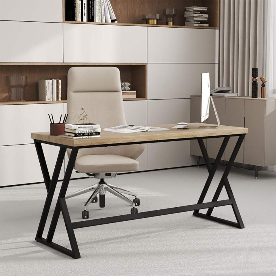 Scrivania per Computer con Telaio in Metallo e Barra Trasversale da 59 Pollici, Design Resistente e Robusto
