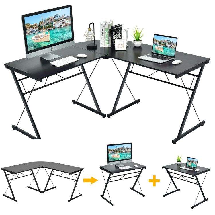 Scrivania ad Angolo a L da 59 Pollici, Postazione di Lavoro Resistente per Ufficio Domestico o Studio, Tavolo per Uso Computerizzato