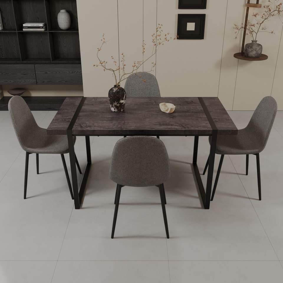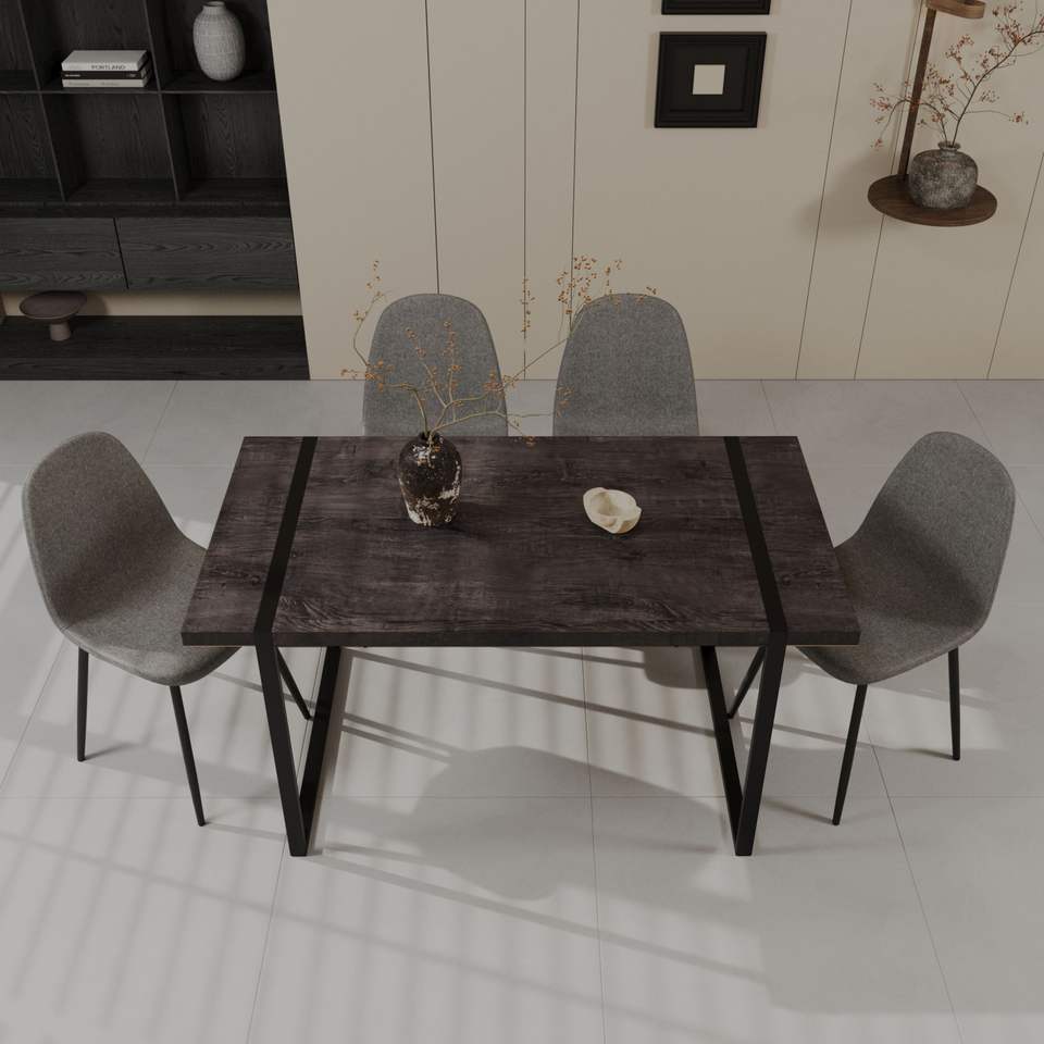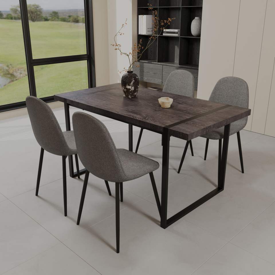 Set da Pranzo Moderno Stile Medievale 59 Pollici, Tavolo Rettangolare in MDF Nero con 4 Sedie per Uso Ristorante