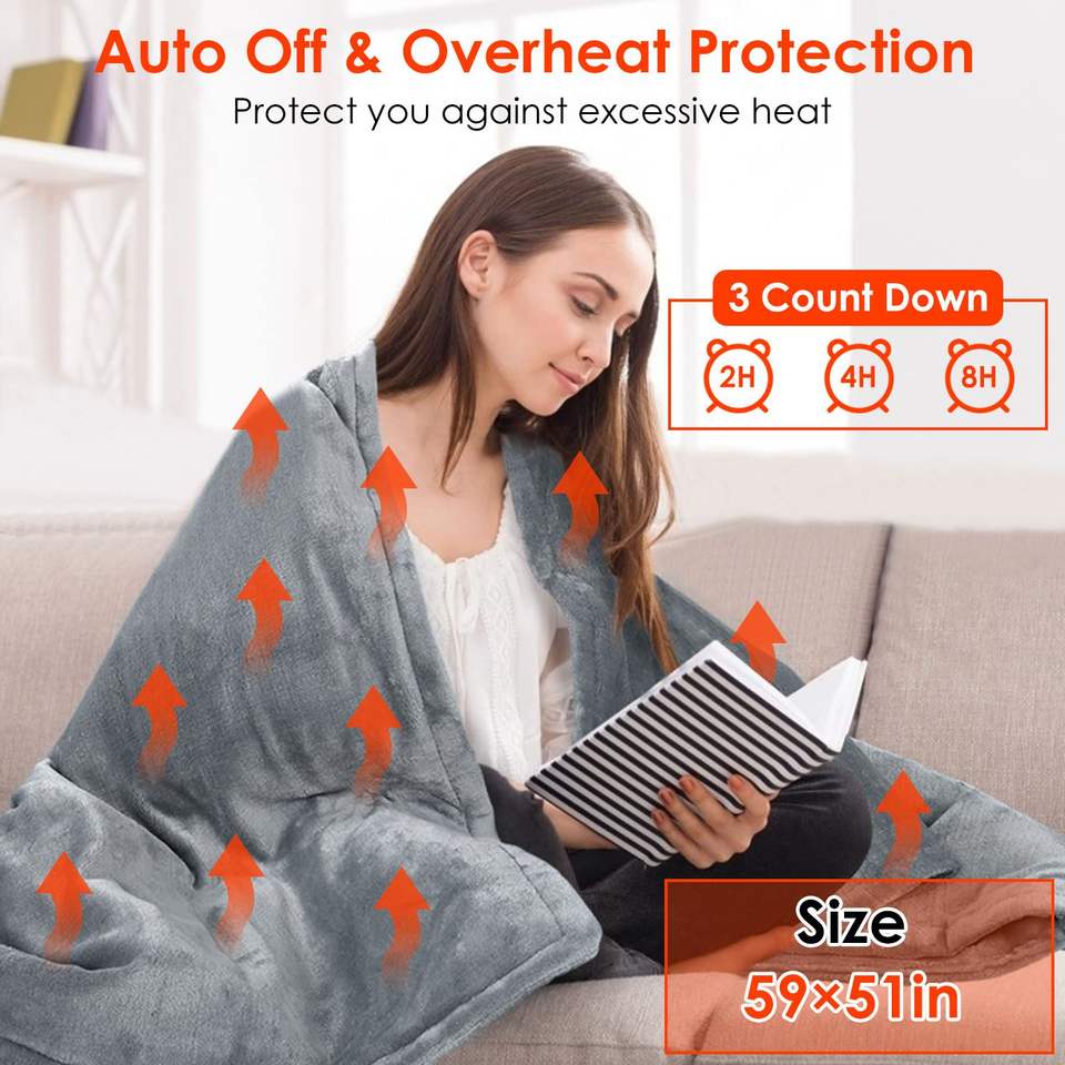 Coperta Elettrica in Flanella 59 Plus 51 Pollici con 10 Impostazioni di Calore, Spegnimento Automatico e Lavabile per Uso Domestico e in Ufficio