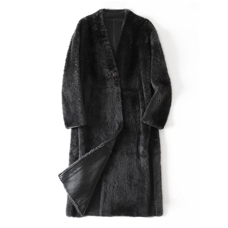 597 Nuovi Arrivi Invernali Cappotto in Lana Mohican Sudafricana con Ampio Scollo a V, Raglan, Dritto, Monopetto, Foderato in Pelliccia di Pecora per Donne
