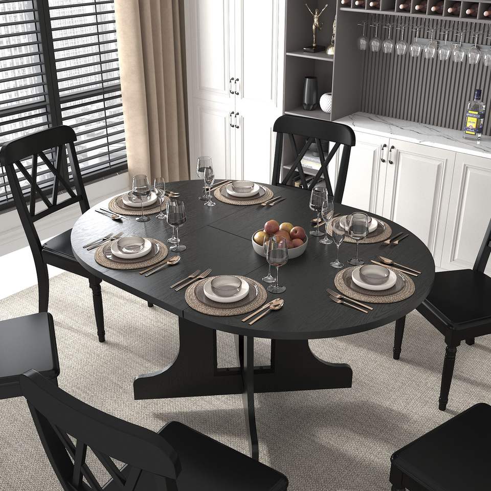 Tavolo da Pranzo Ovale Allungabile 59x43 Pollici per Cucina in Stile Rustico con Base a X Nera e Piano Rimovibile