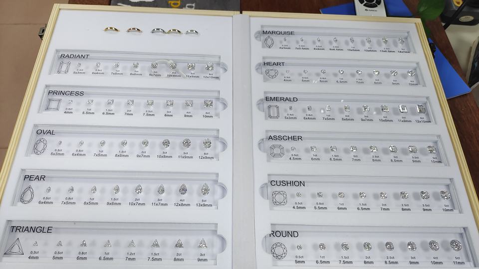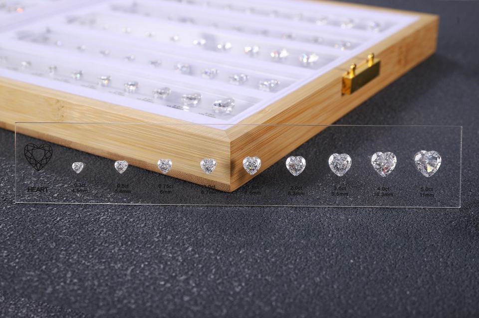 5A diagramma di carati di diamanti con zirconi cubici personalizza il grafico di confronto con Set di dimensioni dell'anello di riferimento pietre preziose di tutte le forme per la creazione di gioielli