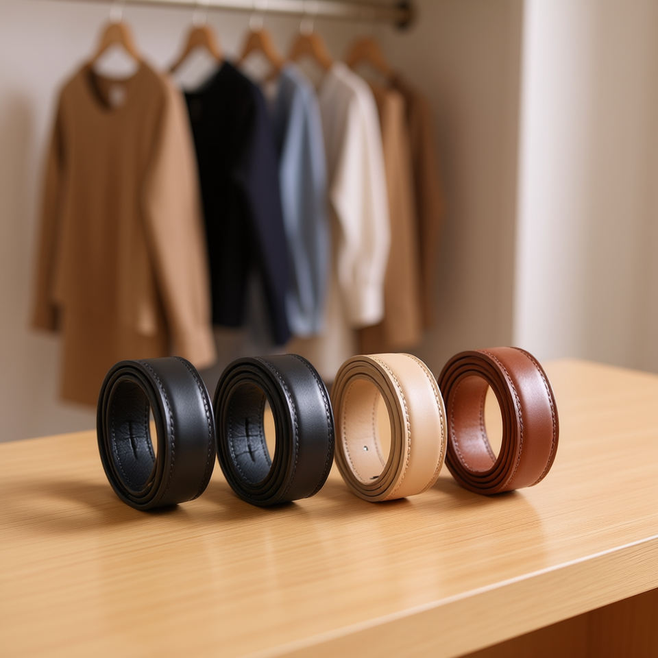 Cintura in Pelle PP con Fibbia Rotonda Effetto Rattan 5Cm