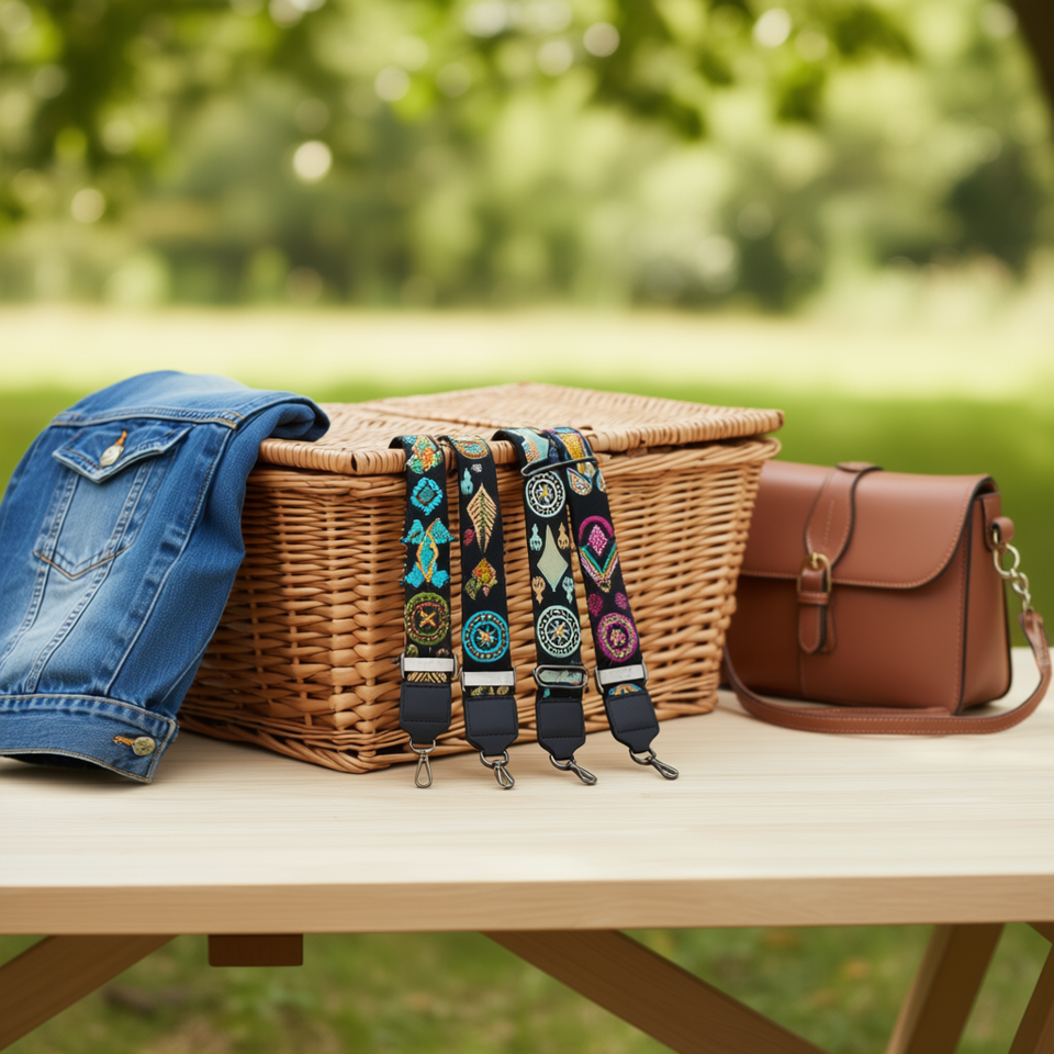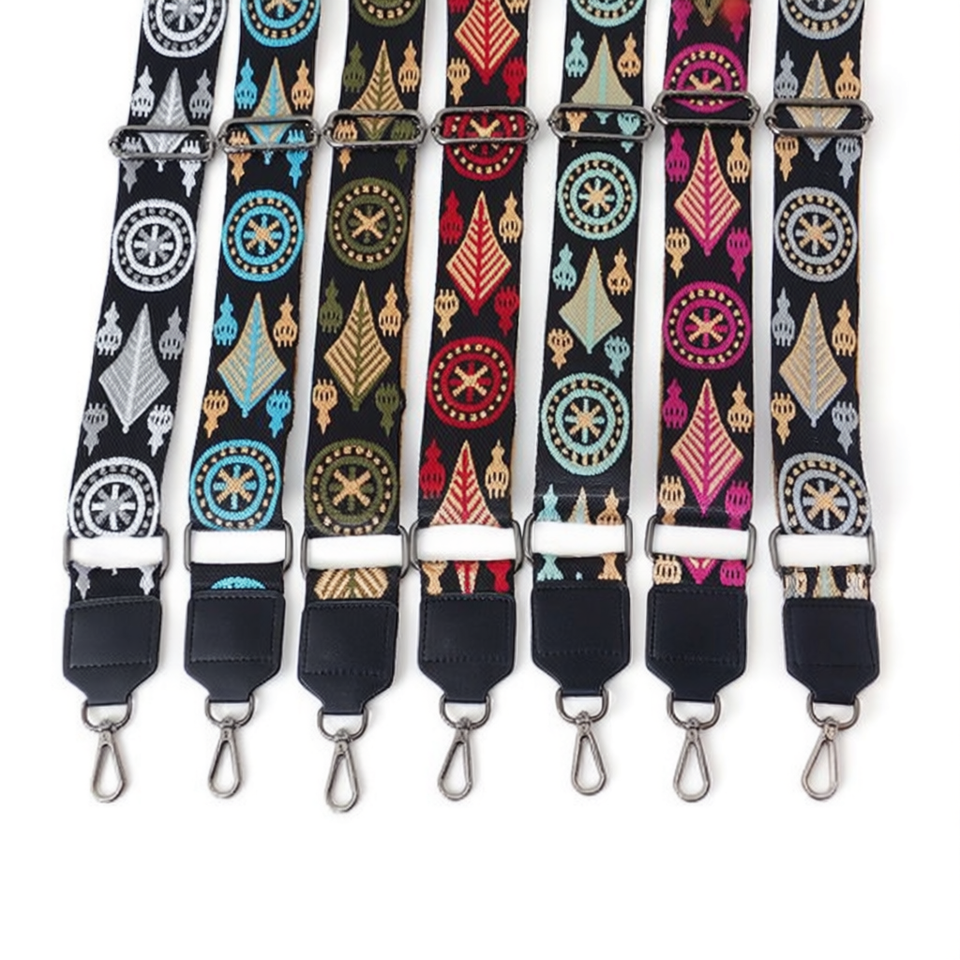 Cinturino a loop da 5 cm per borsa con motivo ricamato e gancio in metallo