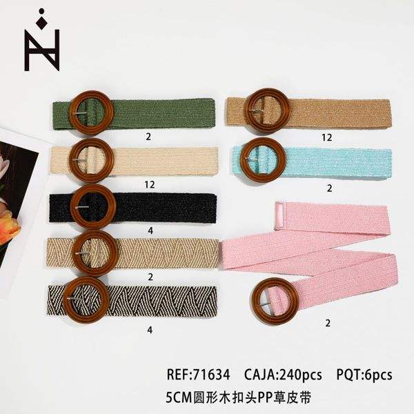 Cintura in Erba Sintetica con Fibbia Rotonda in Legno da 5 Cm, Disponibile in 6 Colori, per Donna, Cinture alla Moda