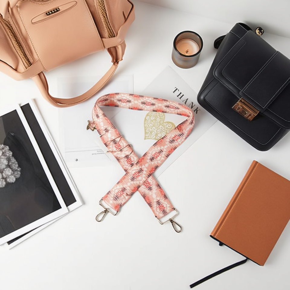 Cinghia in tessuto da 5 cm a quadretti rosa chiaro per accessori borse
