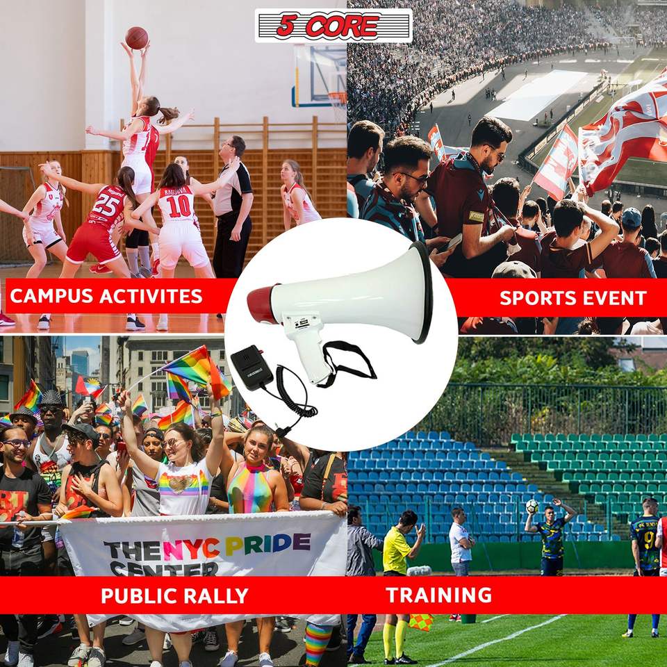 5Core 50W Bullhorn Cheer Megaphone with USB Recording 300M Range Model D0100HXJPLP