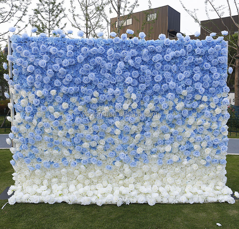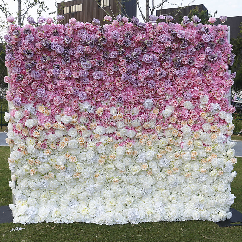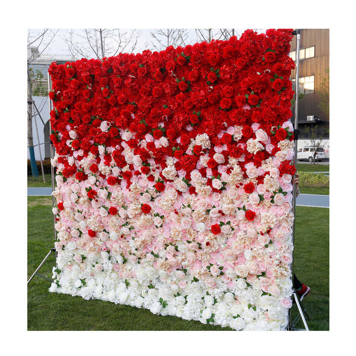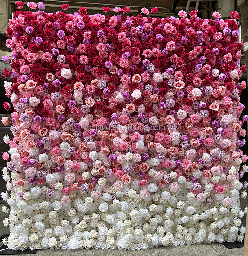 5D arrotolare la tenda piena di rosso rosa blu viola bianco 3D rosa sfondo graduale fiore muro di fiori per matrimonio Baby Shower arredamento: scatola di cartone