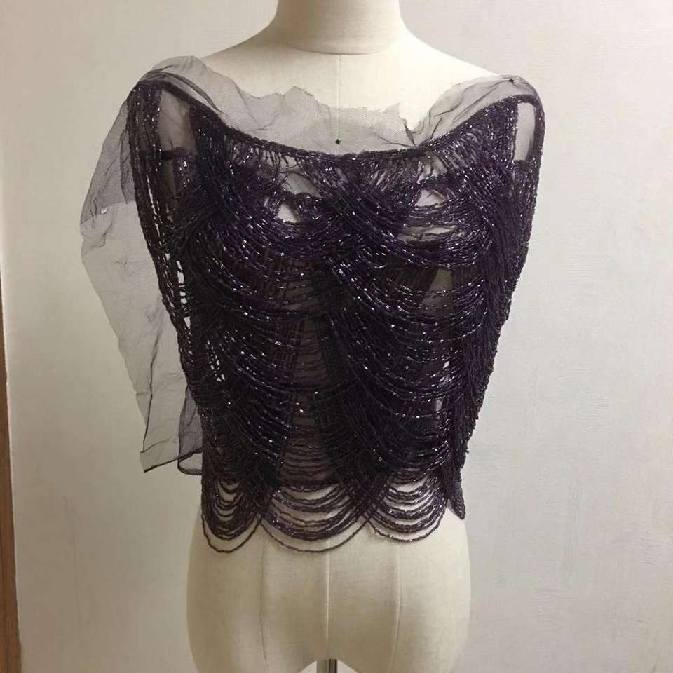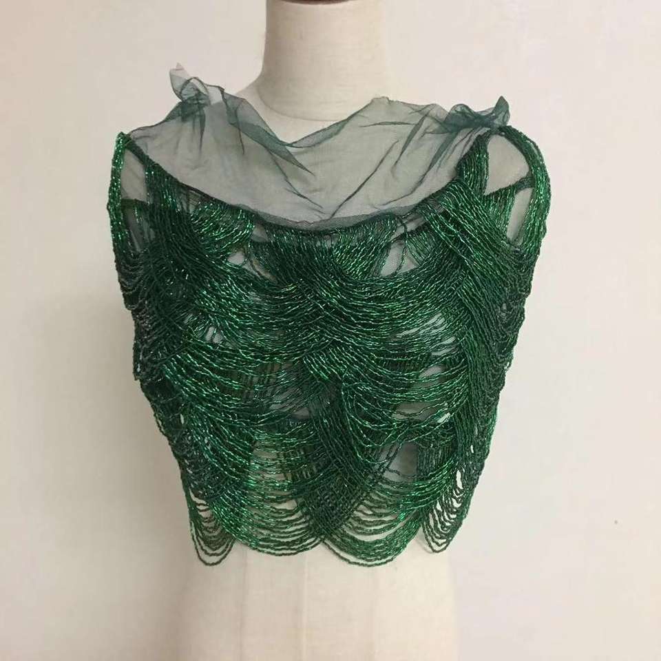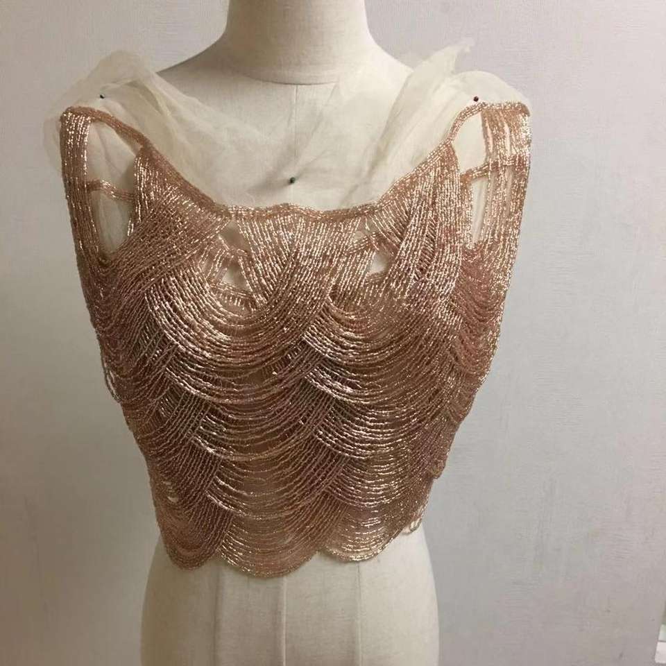 Applicazione per Abito da Sposa e da Sera a 5 Strati con Perline, Frange e Decorazioni, Collo con Strass