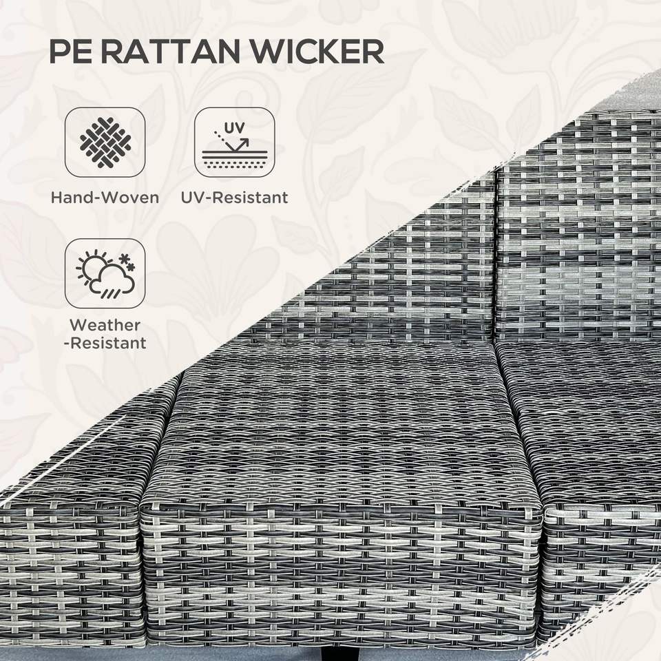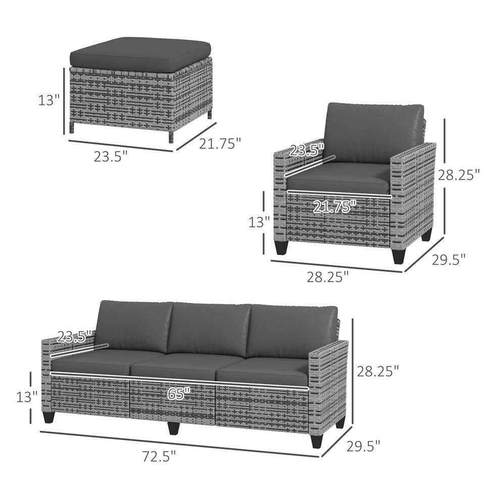 Set di Mobili da Esterno in Rattan Grigio, 5 Pezzi, Elegante Divano a Tre Posti con Poltrone e Poggiapiedi per Giardini
