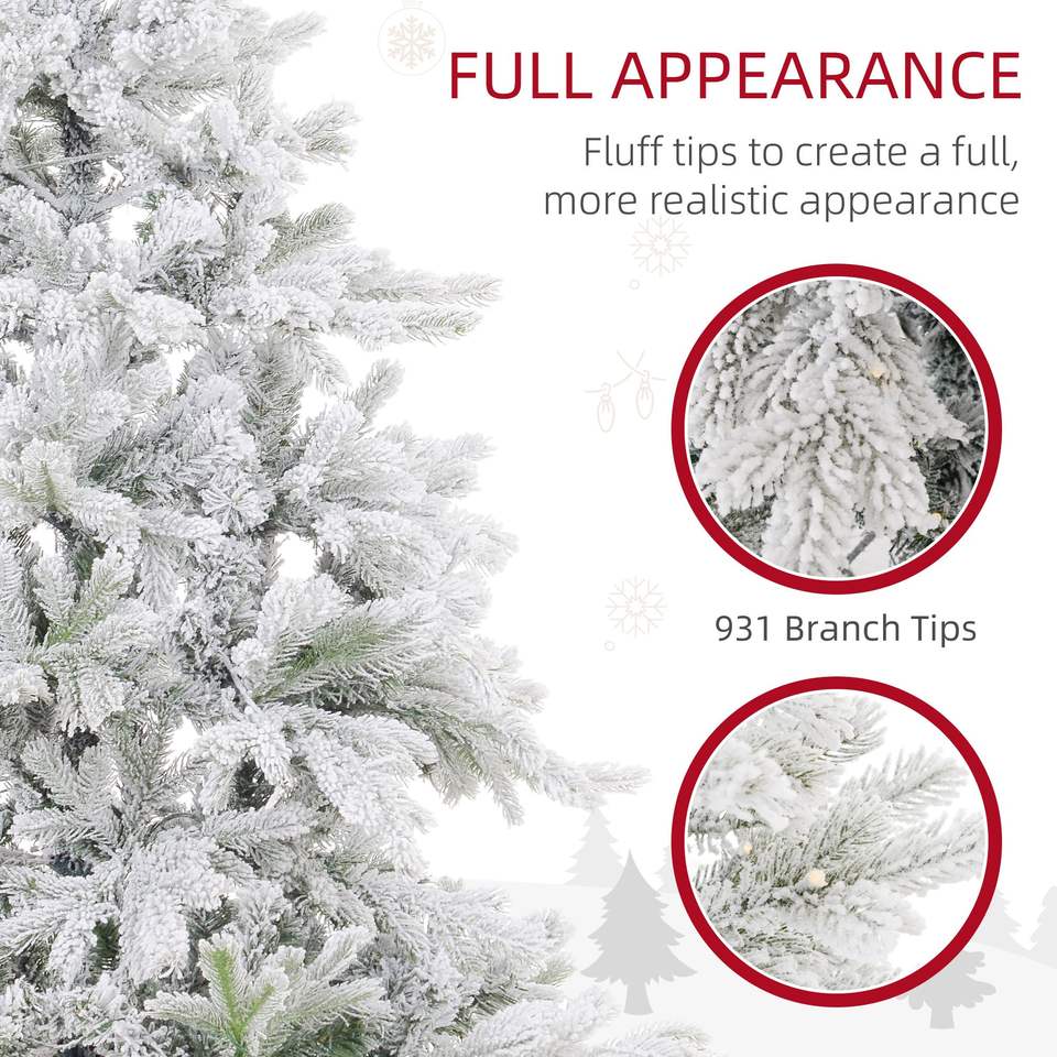 Albero di Natale Artificiale Preilluminato con Luci LED Bianco Caldo, 150 cm, 931 Rami, Base in Metallo Pieghevole, Effetto Neve, Realistico