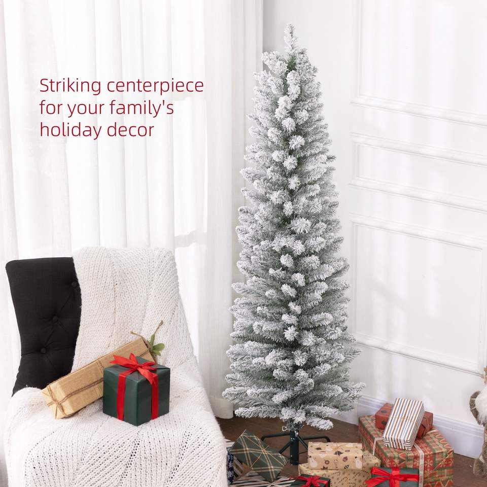 Albero di Natale Artificiale Realistico a Forma di Matita da 1,5 m con 263 Punte Innevate e Base in Metallo