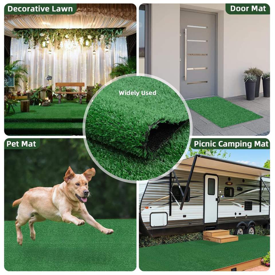 Tappeto in Erba Sintetica per Interni 1,5m x 3m Economico, Spessore 1,5 cm, a Pelo Corto, con Base in Gomma e Fori di Drenaggio