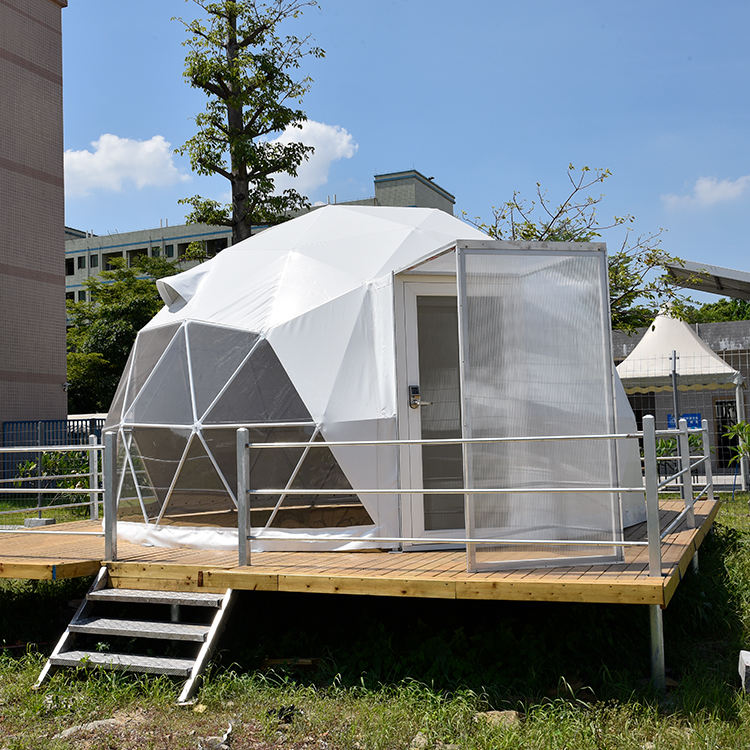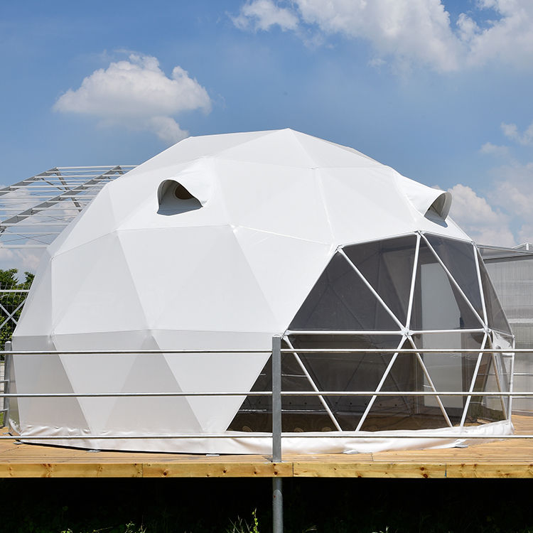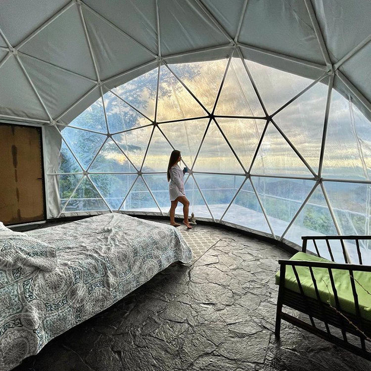 Tenda a Cupola Geodetica Glamping da 5m 6m 8m Prefabbricata in PVC per Hotel Invernali Casa Permanente di Lusso per Campeggio Esterno con Bagno