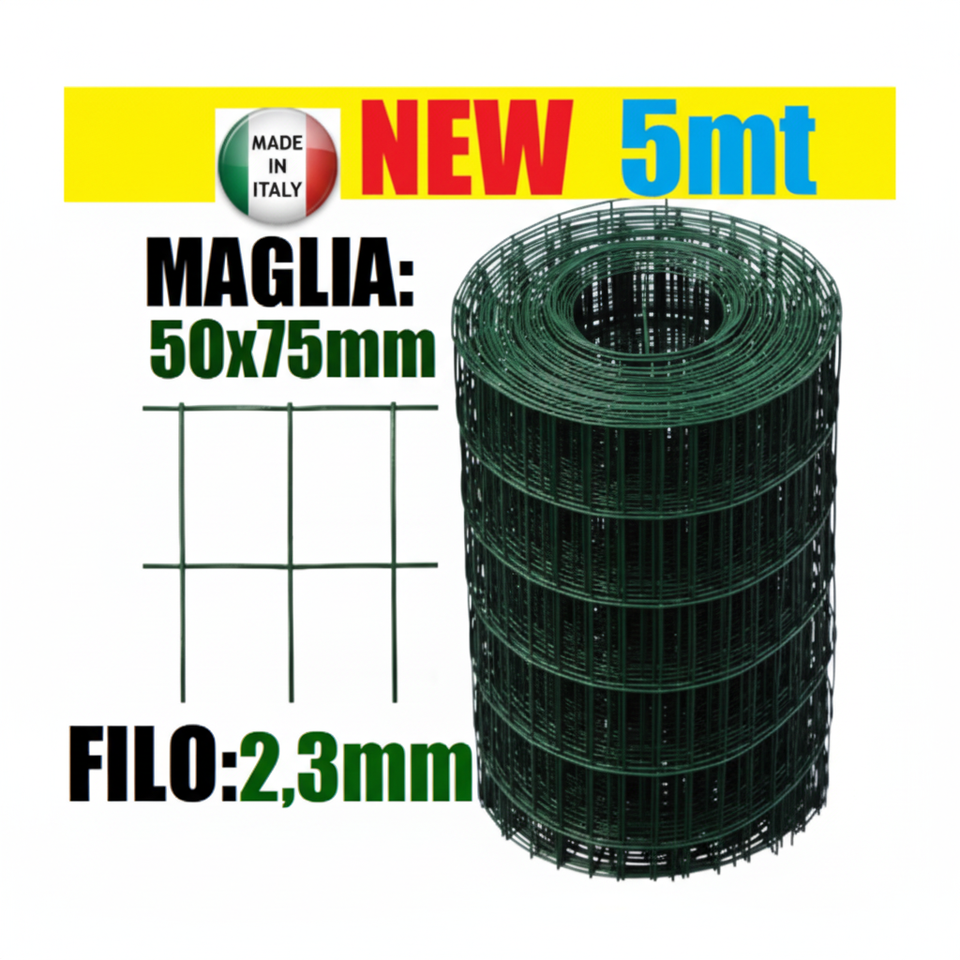 Rotolo di Rete Metallica Zincata Rivestita in Plastica Elettrosaldata 5m 50x75mm Rete da Giardino 200cm H