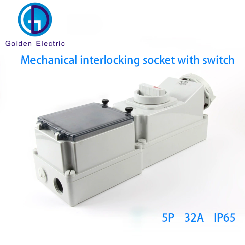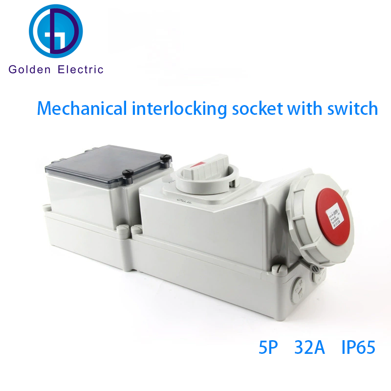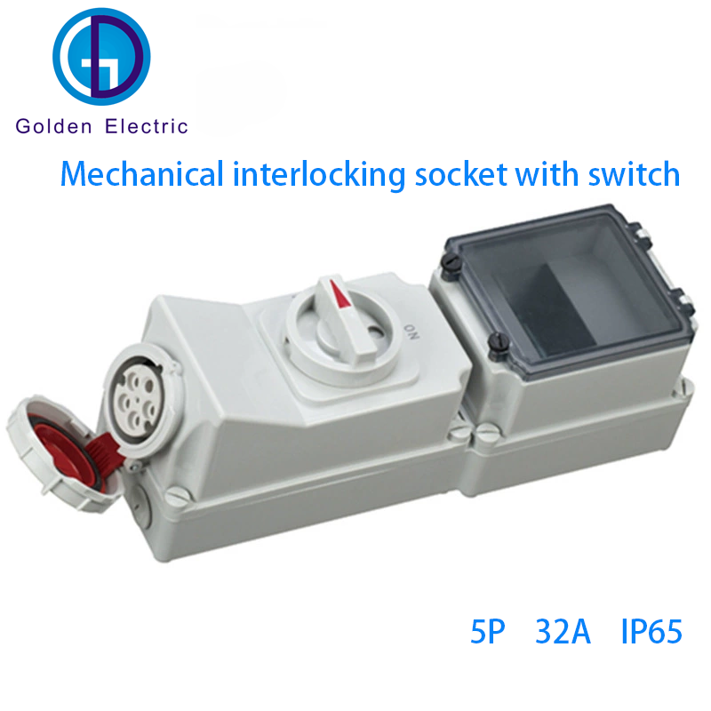 Interruttore Meccanico a 5 Poli con Presa 32A IP67, Presa Industriale Impermeabile Standard Europeo, Rosso e Blu, Due Tipi