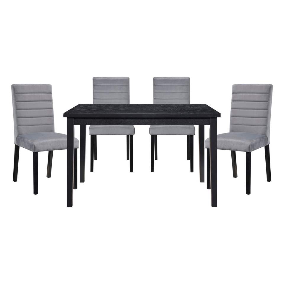 Set da Pranzo in Stile Casual 5 Pezzi, Tavolo in Legno con Finitura Nera e 4 Sedie Laterali in Velluto Grigio per Arredamento Casa