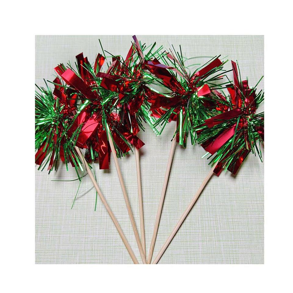 5pcs Christmas Styled Tinsel Foil Firework Cupcake Toppers Tinsel Cake Toppers Birthday Wedding Graduation Party Decoration