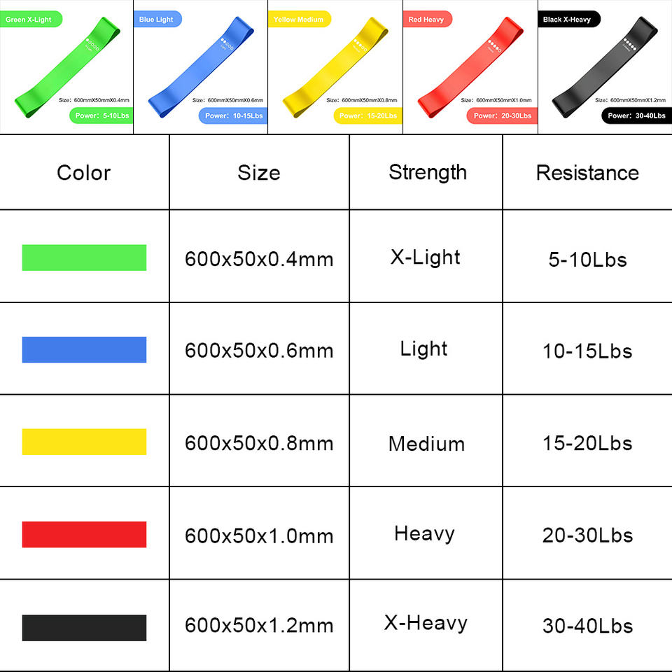 Set di 5 Fasce Elastiche in Latex per Yoga, Fitness, Tonificazione Glutei e Gambe, Riabilitazione, Allenamento di Forza, Esercizi per Tutto il Corpo, Personalizzabili