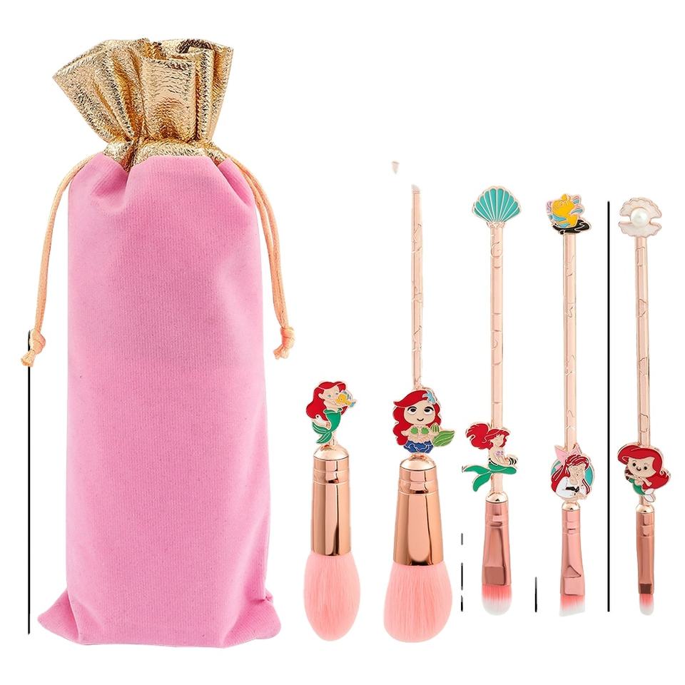 5 pezzi Set di pennelli per il trucco da principessa sirena con manico in metallo oro rosa adorabile Kit di etichettatura della sirenetta