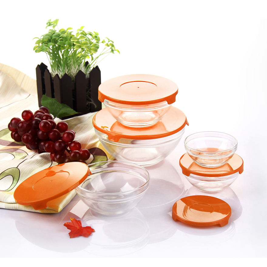Set di 5 Ciotole per Conservazione con Coperchi Colorati a Trasferimento Termico, Set di Ciotole per Insalata con Coperchio Colorato, Ciotole in Vetro Personalizzabili