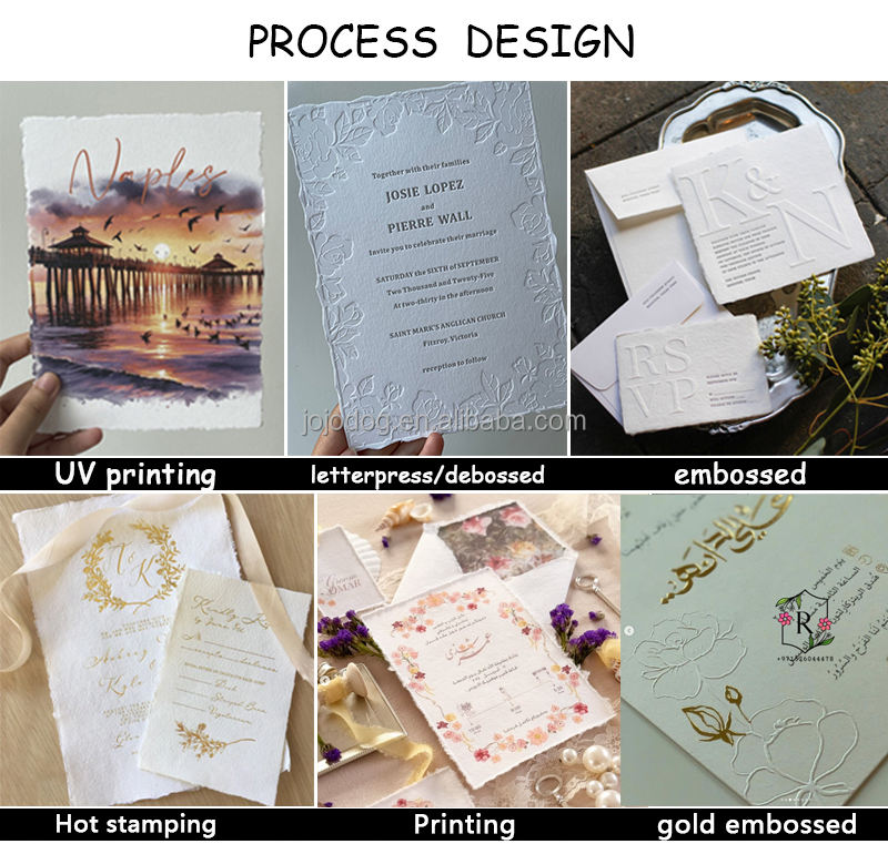 300 GSM in cotone 100% 5x7 pollici, carta fatta a mano con bordo, stampa di inviti di nozze, acquerelli