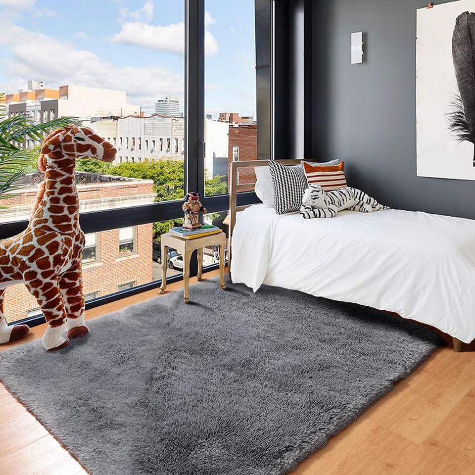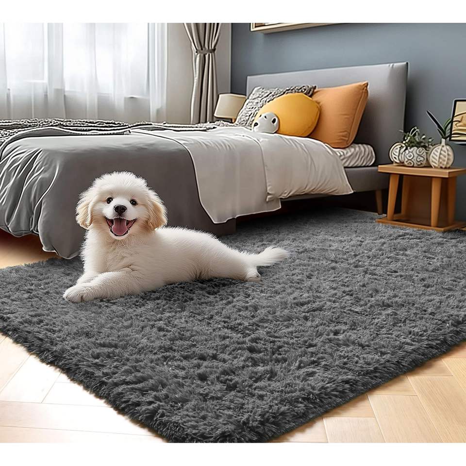 Tappeto Grigio Soffice e Peloso 5x8 ft, Grande Tappeto Antiscivolo per Interni, per Soggiorno, Camera da Letto, Set di Tappeti Morbidi e Confortevoli
