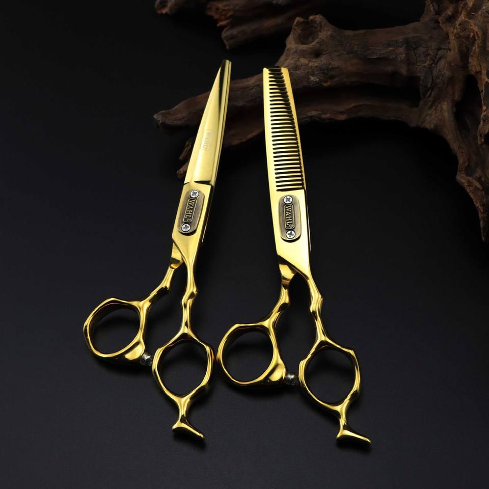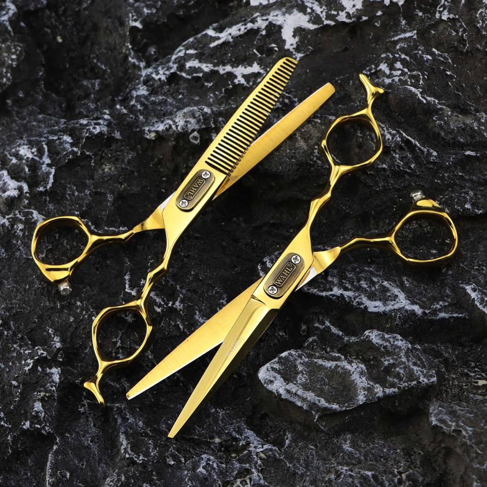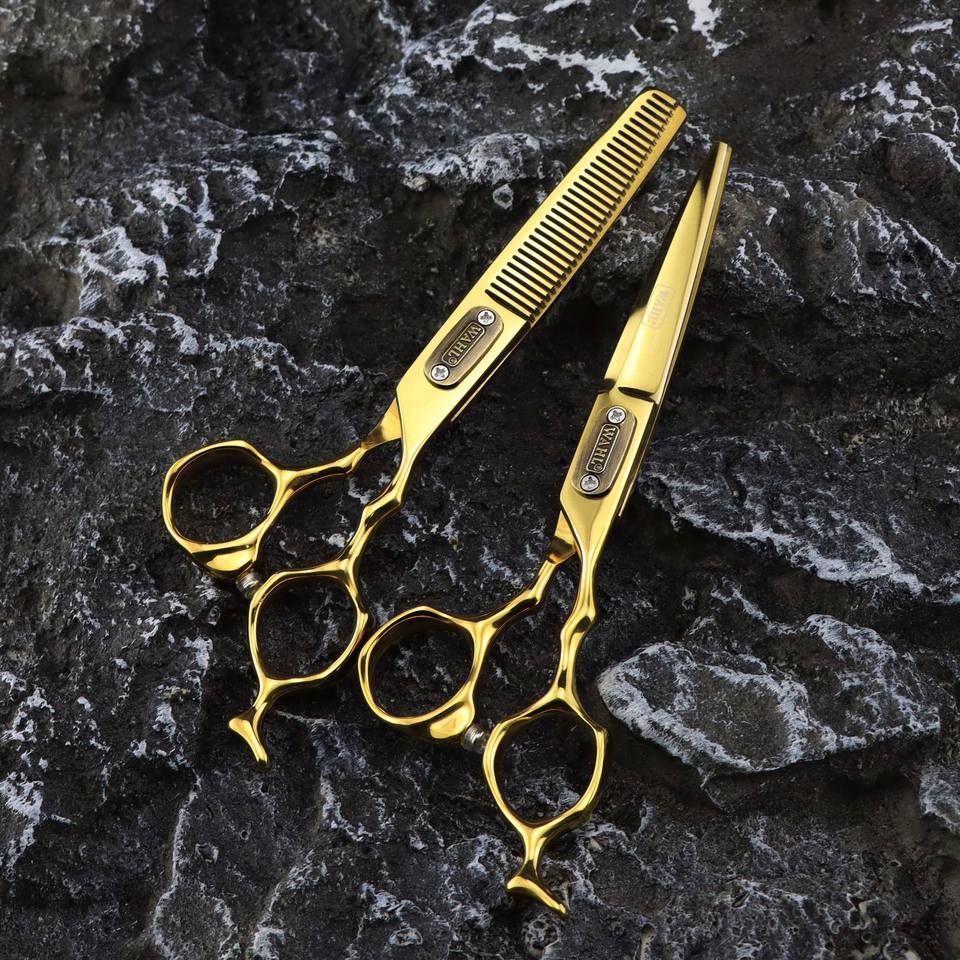 Forbici da Sfoltimento Walther Stile Tedesco Nero e Oro da 6.0 Pollici per Parrucchieri e Barbieri