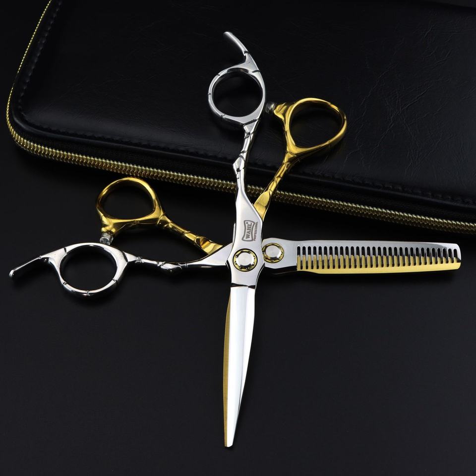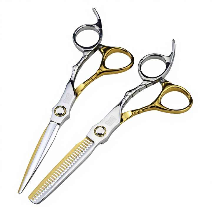 Forbici da Parrucchiere XY-11 da 6.0 Pollici, Bianche e Dorate, con Cuscinetti, Lama Piatta a Denti Affilati