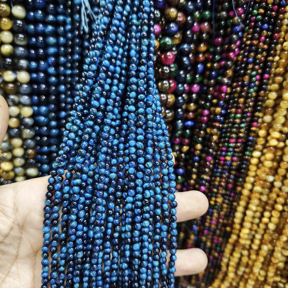 6-12mm Round Lake Blue Tiger's Eye Stone Loose Beads Natural Stone for DIY Jewelry Accessories Bracelet Necklace
