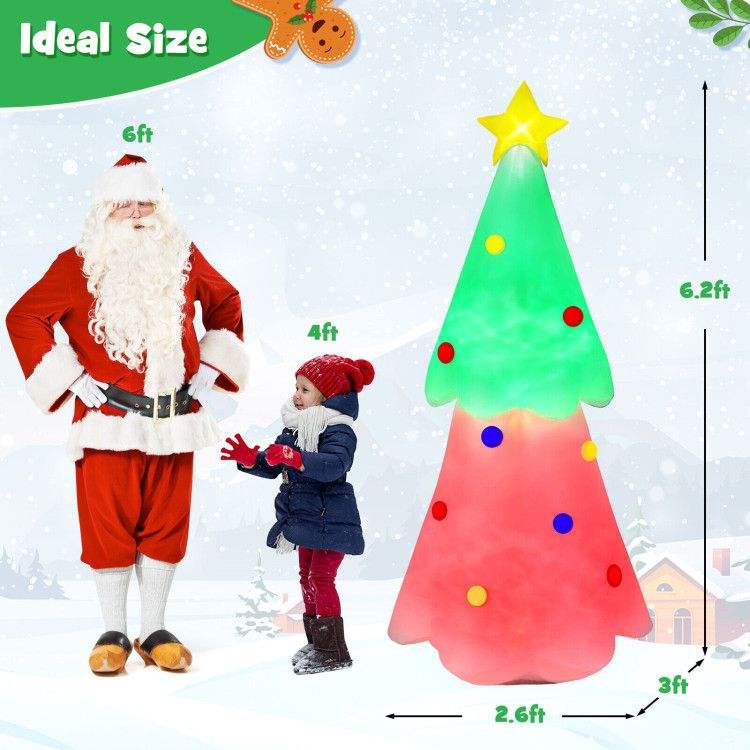 Albero di Natale Gonfiabile di 1,89 Metri con Stella in Cima e Luci, Decorazione Festiva