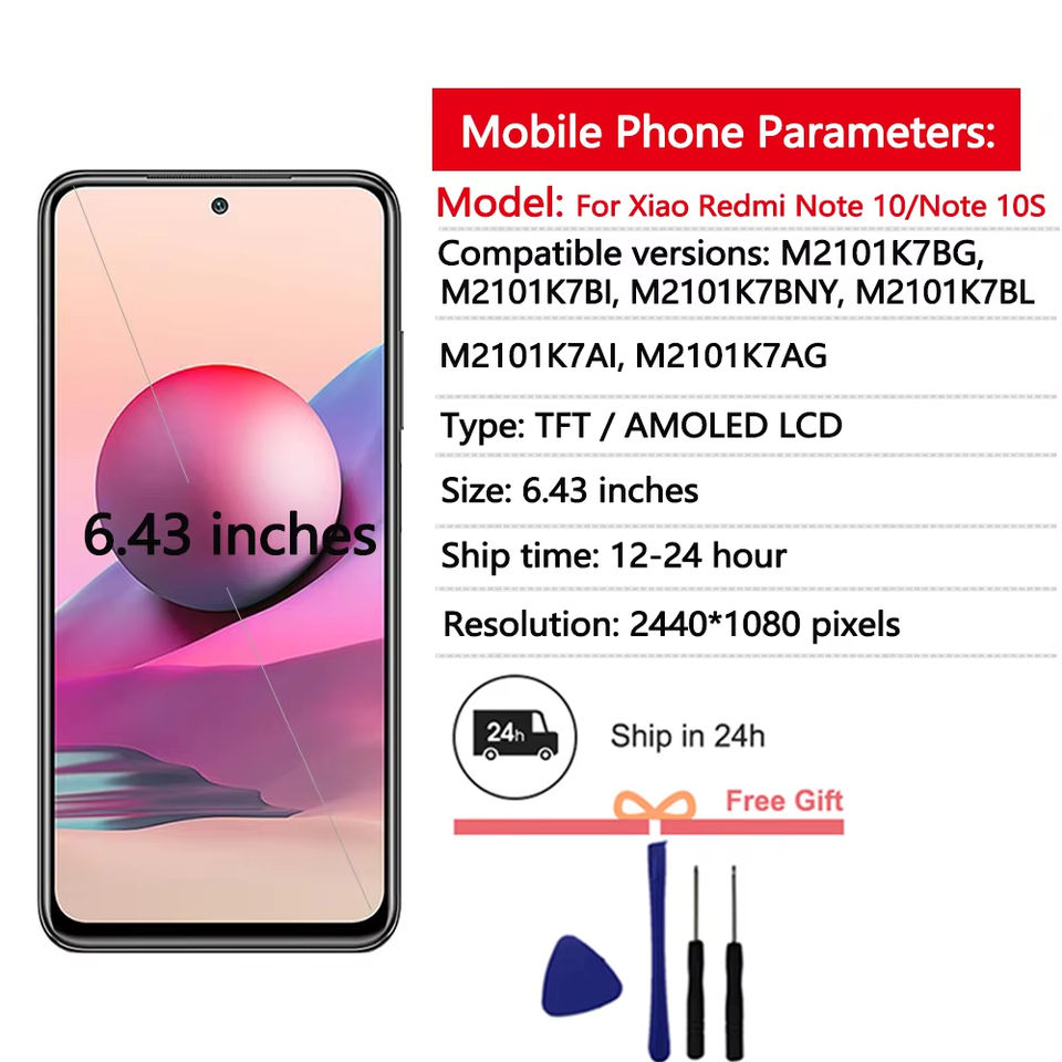 Display 6.43 "AMOLED per Xiaomi Redmi Note 10S Display LCD Touch Screen gruppo digitalizzatore per Display Redmi Note 10 4G