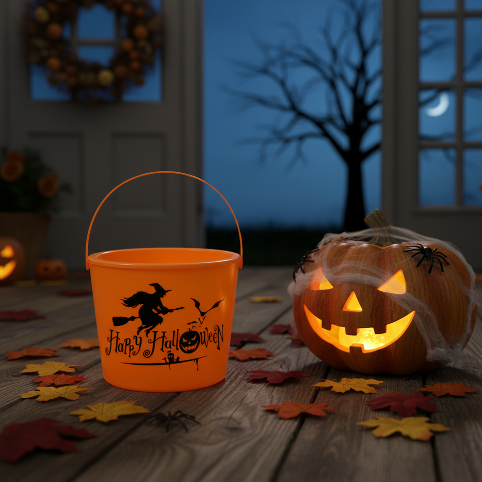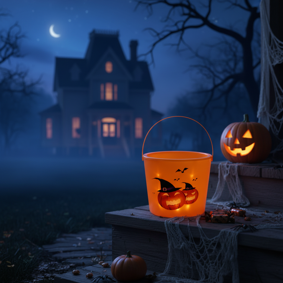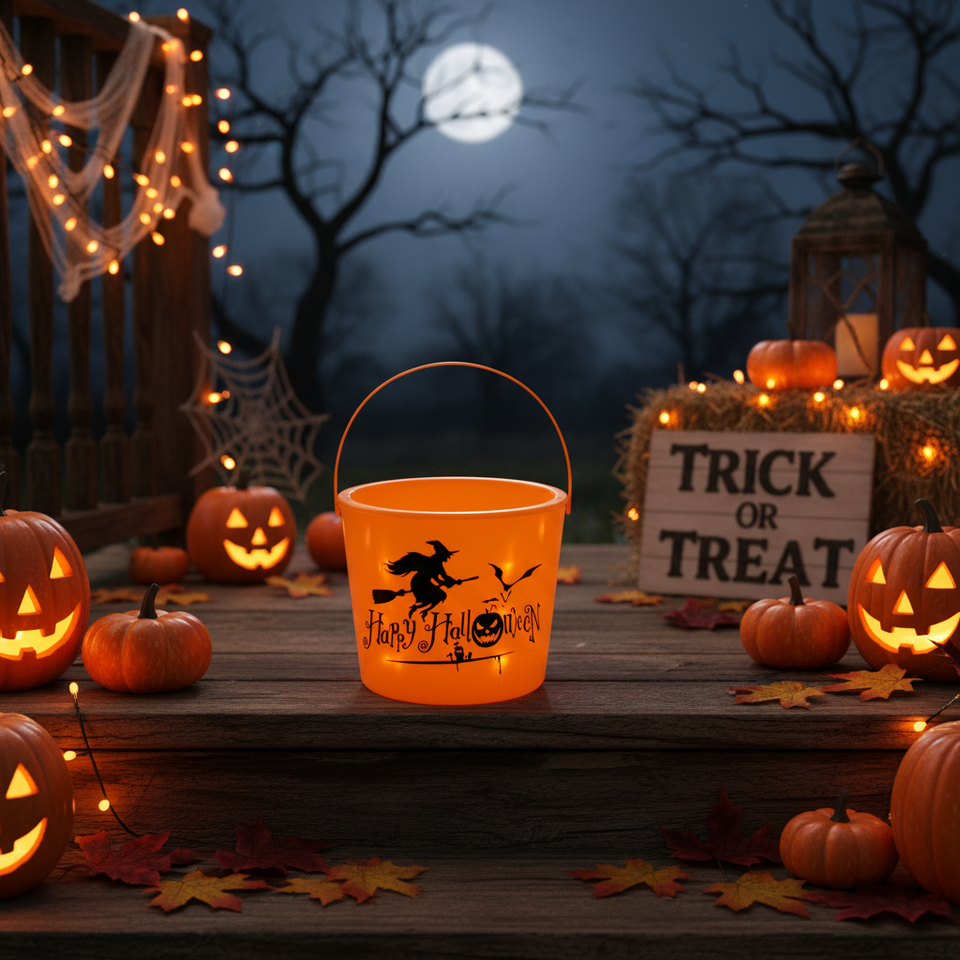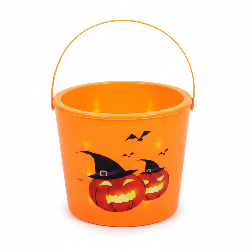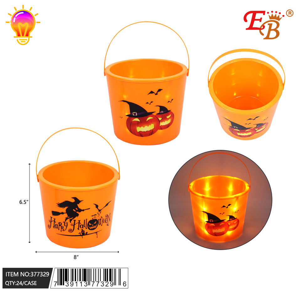 6.5\"X8\" Halloween Bucket with Light 24pcs/CS Festive Holiday Supplies