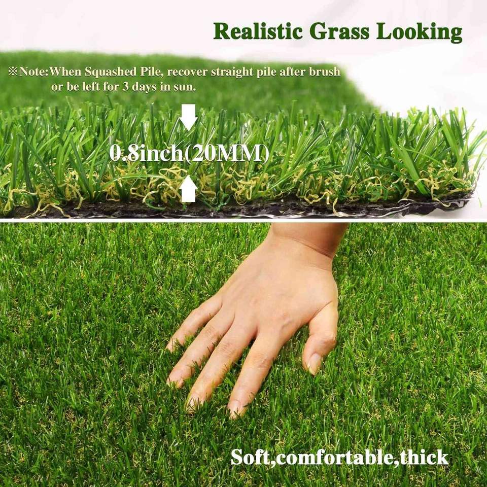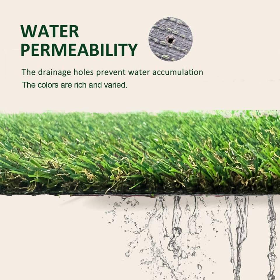 Tappeto in Erba Sintetica Economico 6.5ft X 15ft con Fori di Drenaggio da 0.8'' e Base in Gomma per Uso Interno/Esterno