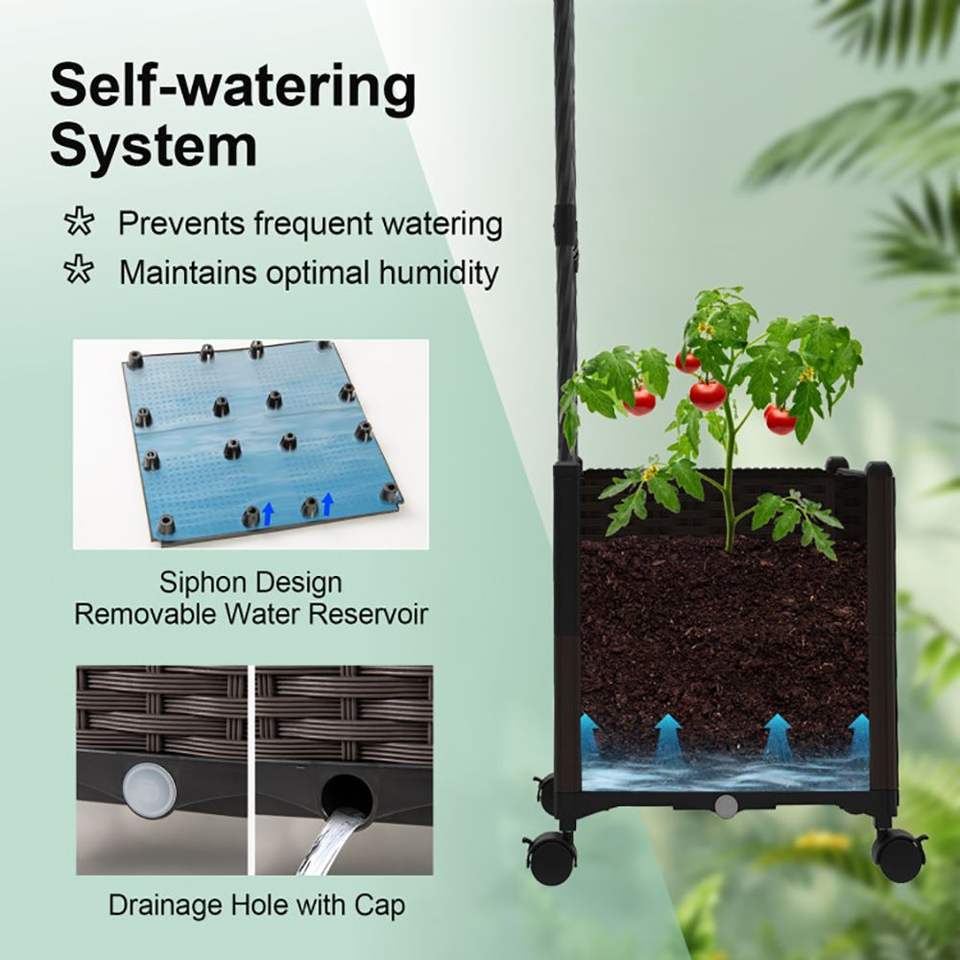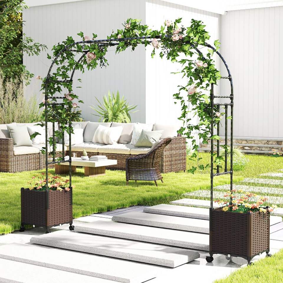 Arco da Giardino con Ruote Bloccabili e 2 Fioriere, 2 Metri, Elegante Recinzione e Cancello