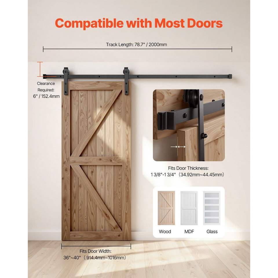 Kit Ferramenta per Porta Scorrevole Stile Barn da 2 Metri, Capacità di Carico 150 kg, Compatibile con Larghezza 90-100 cm e Spessore 35-40 mm