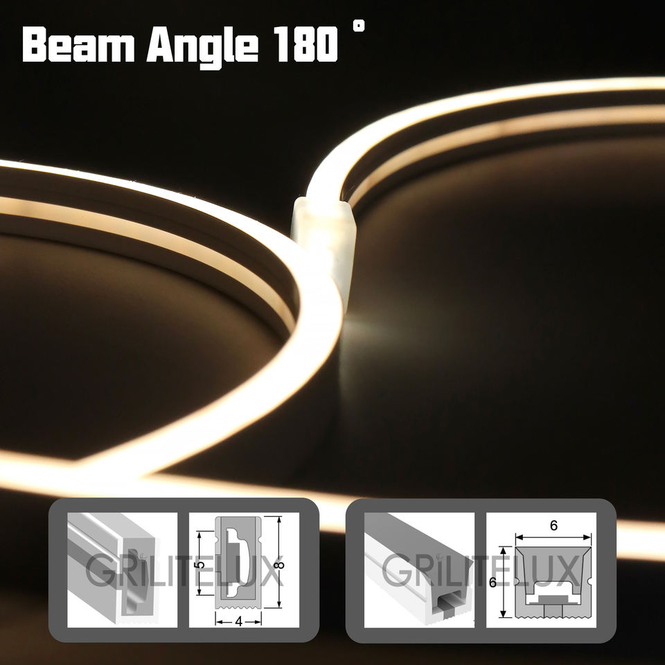 6*6mm Silicone Neon Flex Light Rope Silica Tube IP66 Waterproof 120leds/m 2835 2025 3000K 4000K 6000K for Cabinet Strip Light