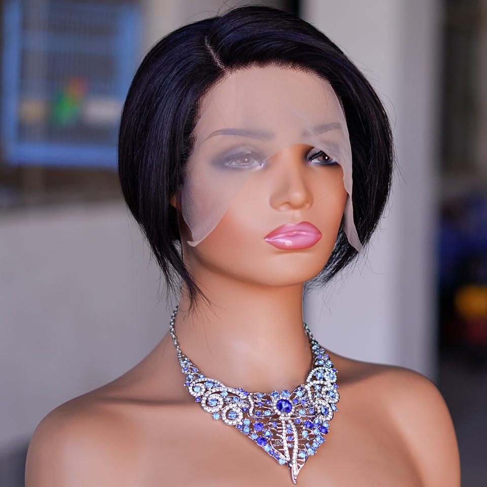 Stile di Parrucca:Parrucca corta e liscia in capelli umani, taglio pixie.