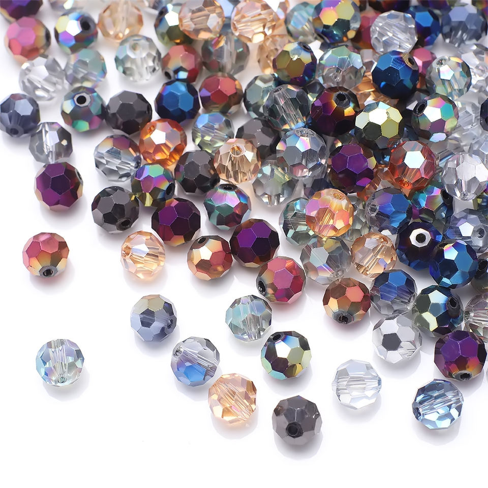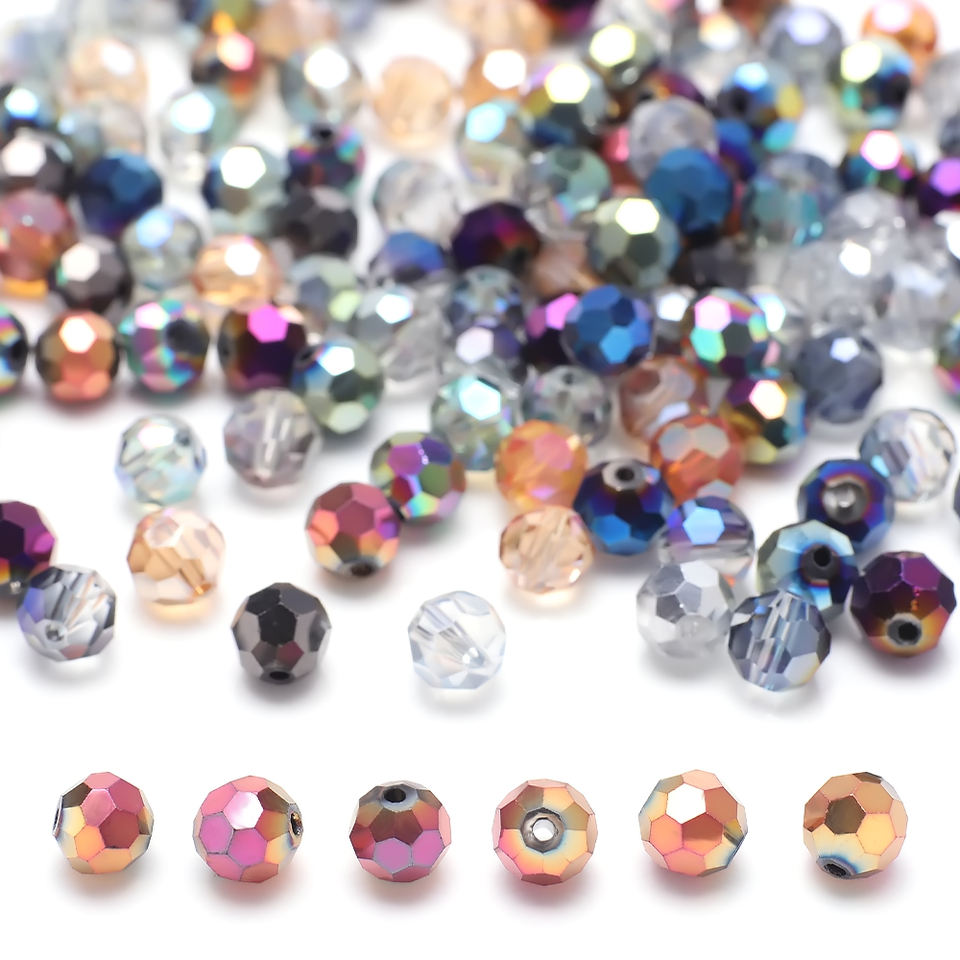 Perline di Cristallo Sfaccettate Placcate 6/8mm, Perline di Vetro Rotonde a Forma di Pallone da Calcio per Creazione di Gioielli, Kit Fai-da-Te per Collane, Bracciali, Orecchini e Charm da Donna