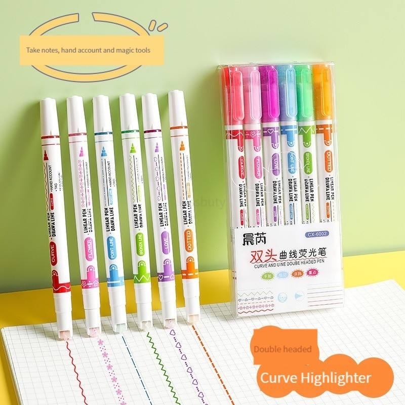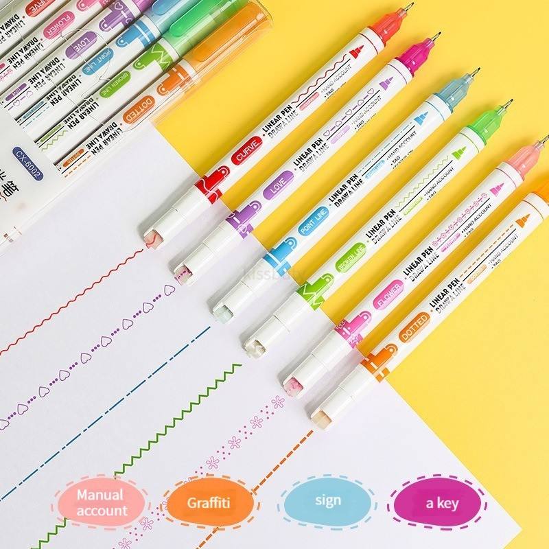 6/8pcs cuore fiore Dot Line a forma di evidenziatore penna colore Roller Tip Curve Liner Art Marker evidenziatore penna evidenziatore Kawaii