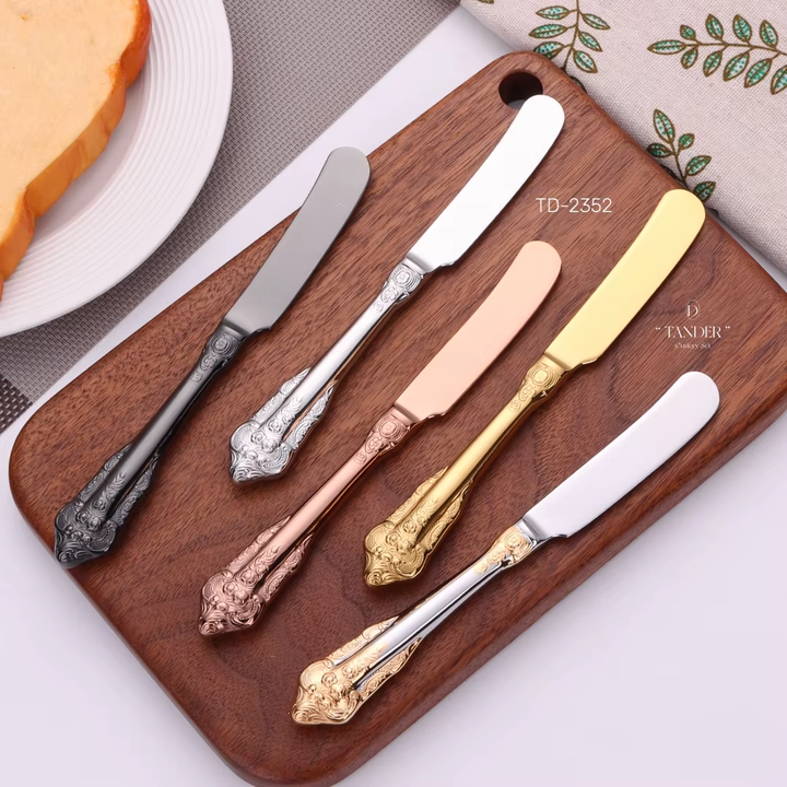6.9 Inch Vintage Butter Spreader Mirror Gold Stainless Steel Butter Knife With Hollow Handle Cheese Bread Butter Knife Spread